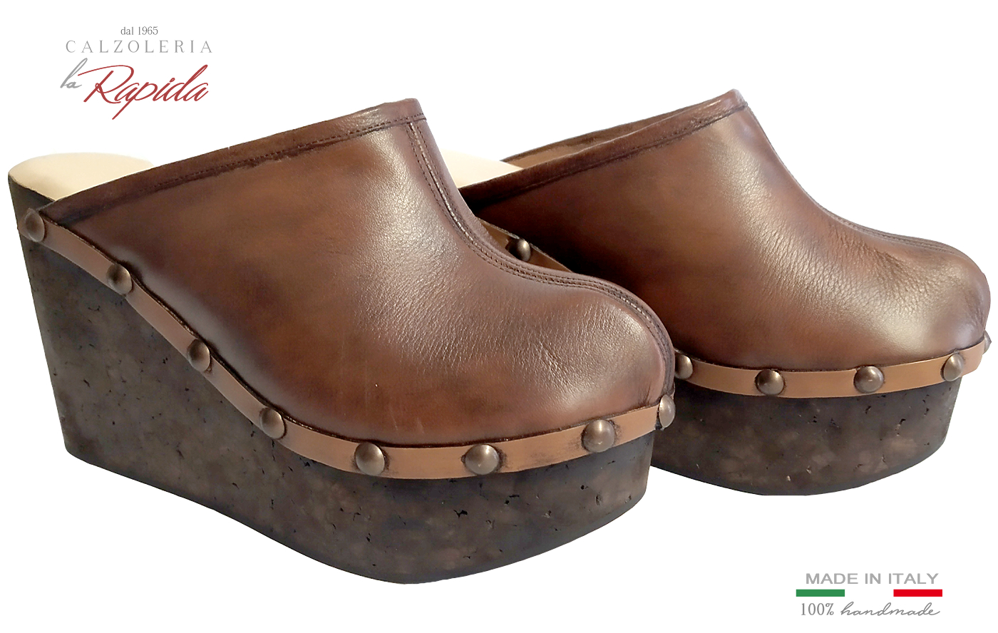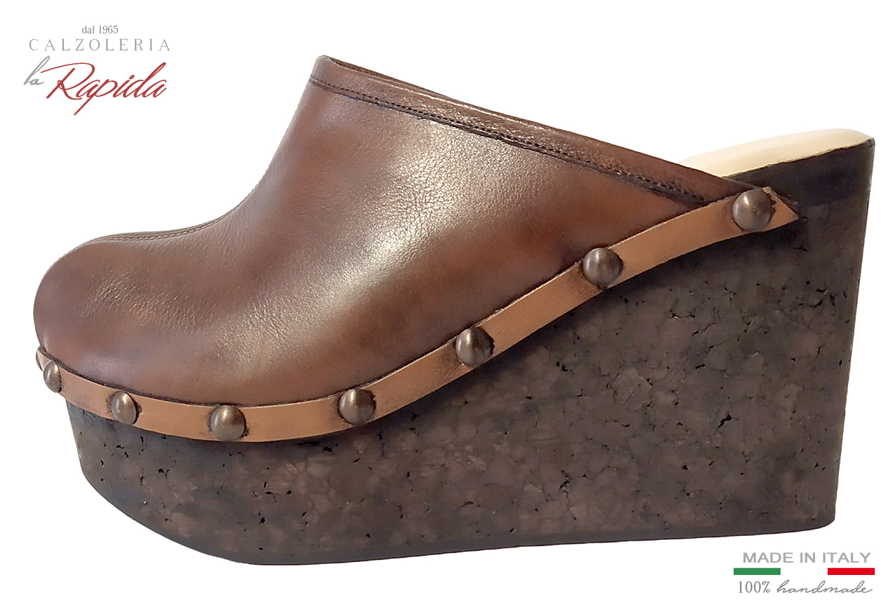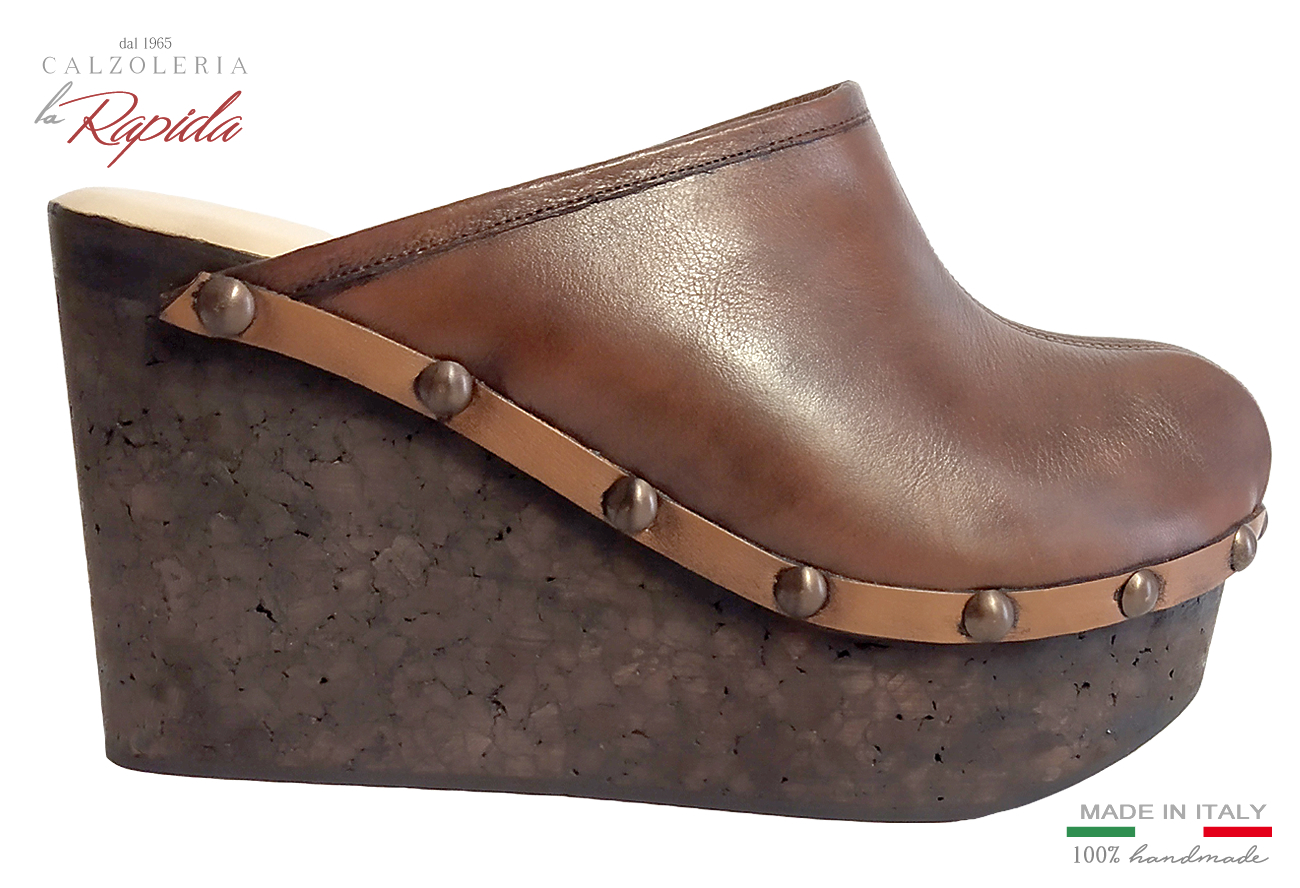 Materiale: fondo in completo sughero con fascia chiusa in pelle marrone scura.