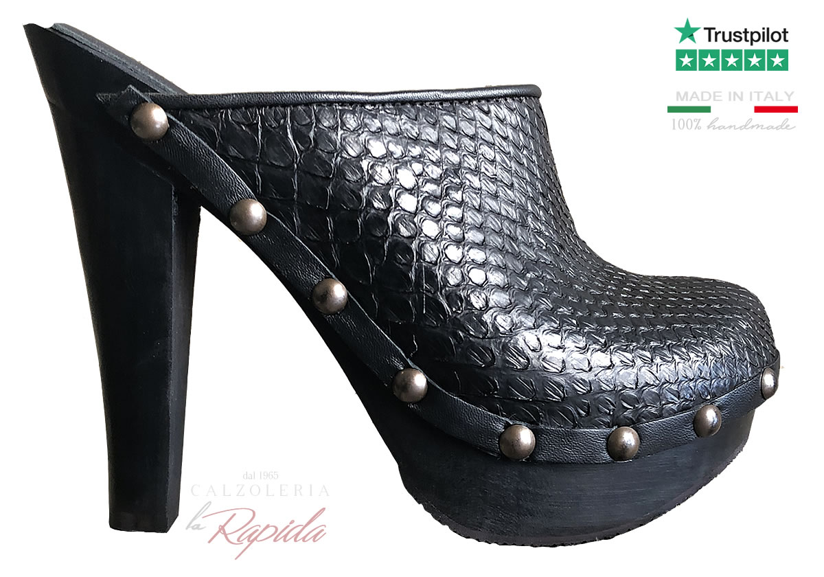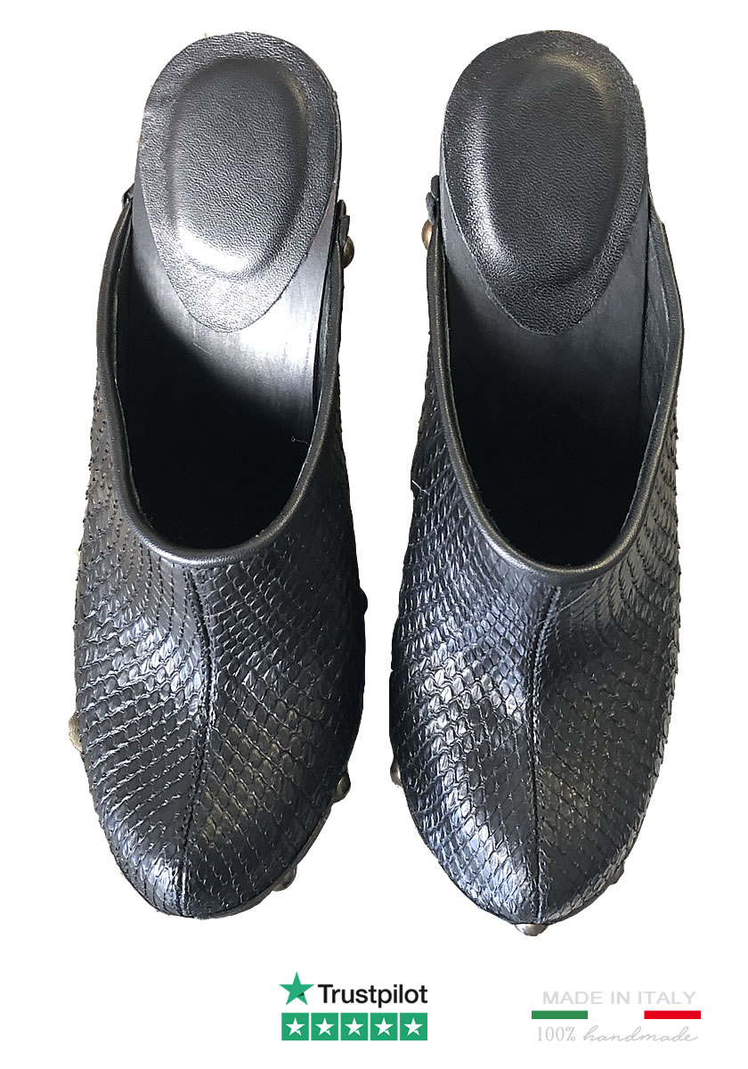 Zoccoli Sabot Chiusi Pelle Serpente Neri