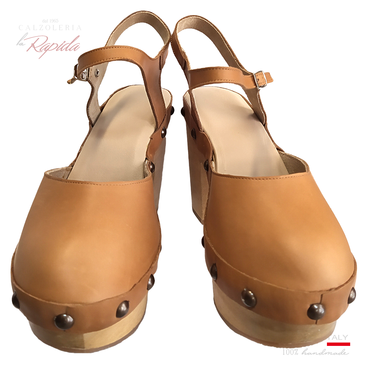 Descrizione: bellissimi zoccoli svedesi, clogs da donna in pelle e cuoio naturale, realizzati con pianta in pelle imbottita molto comoda.