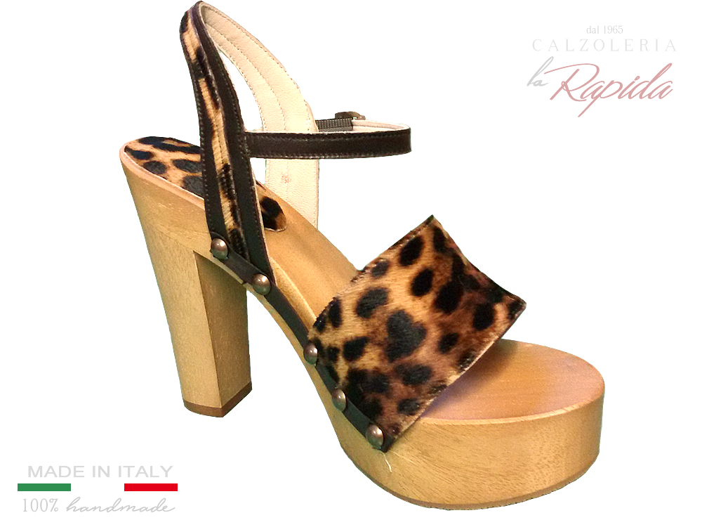 Materiale: tomaia in pelle maculata leopardo, con fibbia color ottone. Cavigliera fatta a mano regolabile in larghezza per rendere il tutto cool e alla moda.