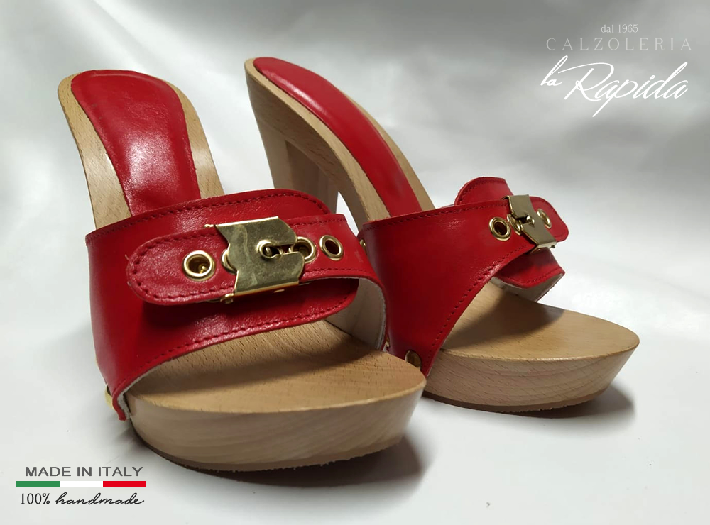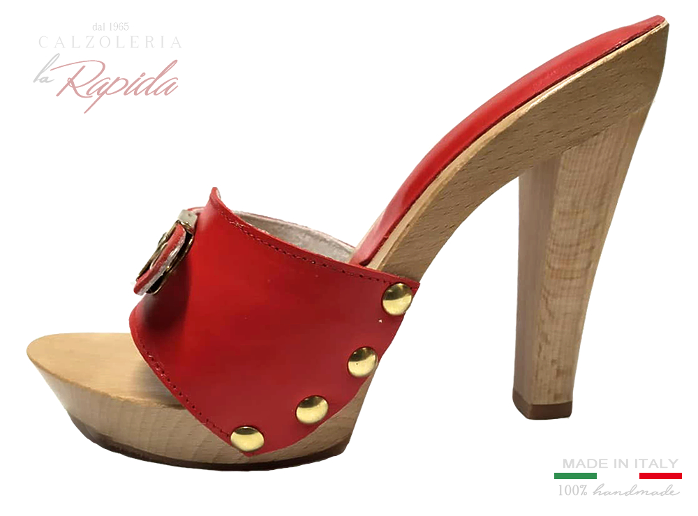 ► Zoccoli in pelle rossi fascia regolabile tacco alto | LA RAPIDA
