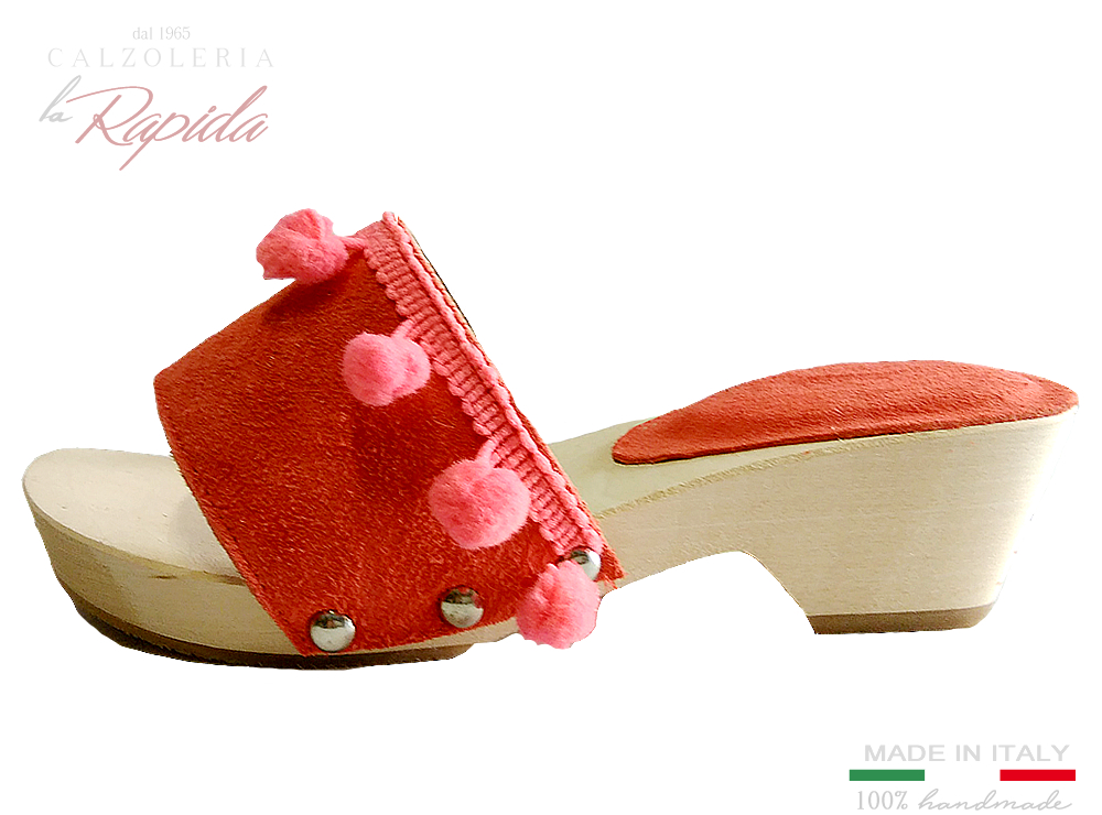 Materiale: legno con fascia in pelle scamosciata rossa con graziose decorazioni a pallini.