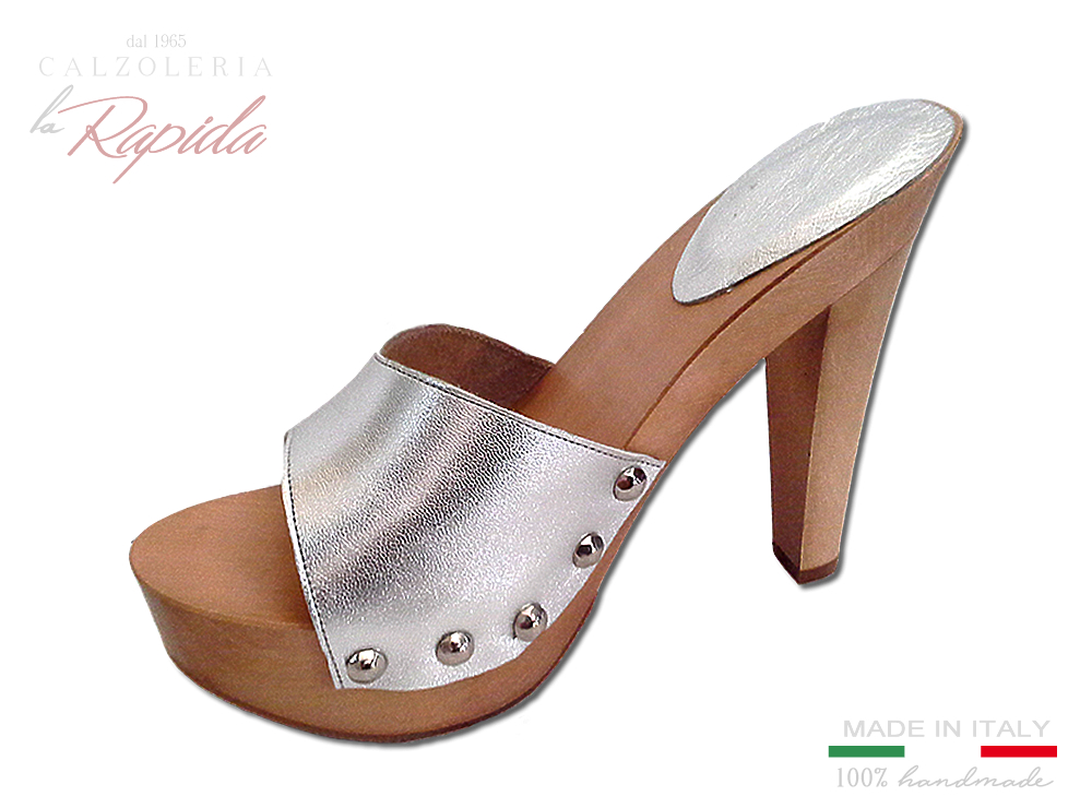 Zoccoli Donna Pelle Argento Argentata Tacco Alto | La Rapida