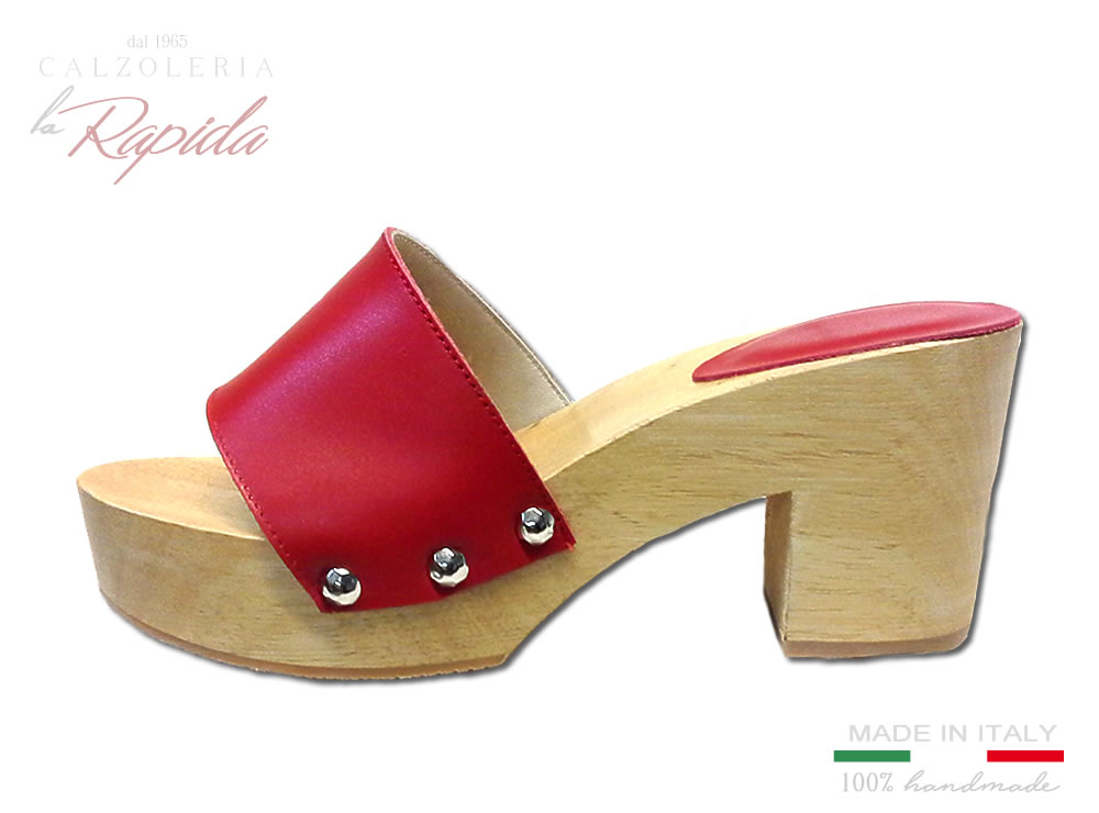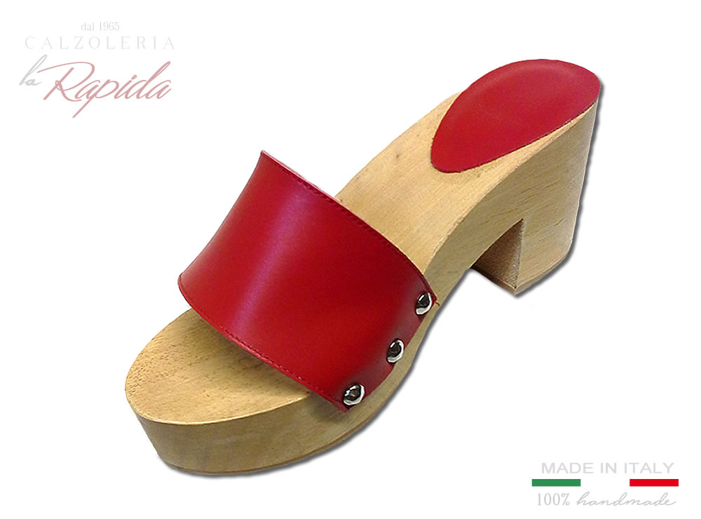 Materiale: zoccolo in legno tomaia in pelle color rosso
