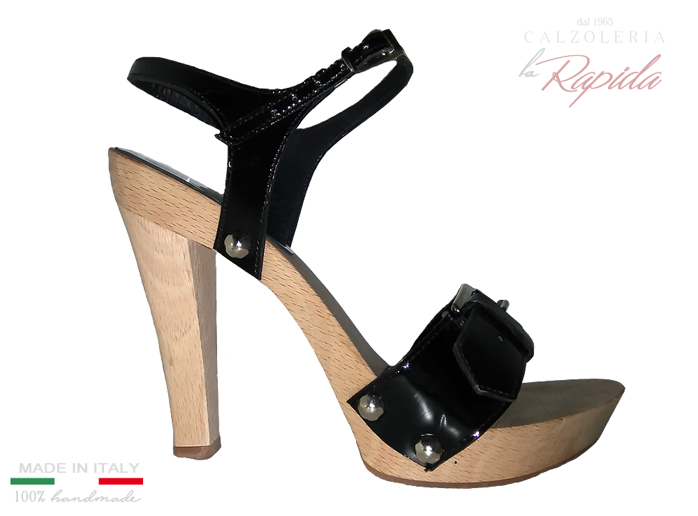 Descrizione: bellissimi sandali con tacco, eleganti in pelle nera lucida, danno slancio e risalto alla tua femminilità