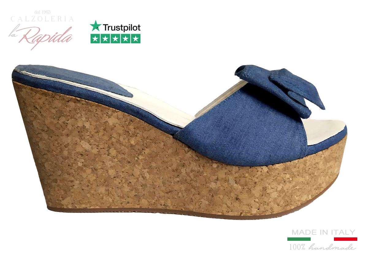 Zeppe Donna 2024 Sughero Denim Jeans Fiocco