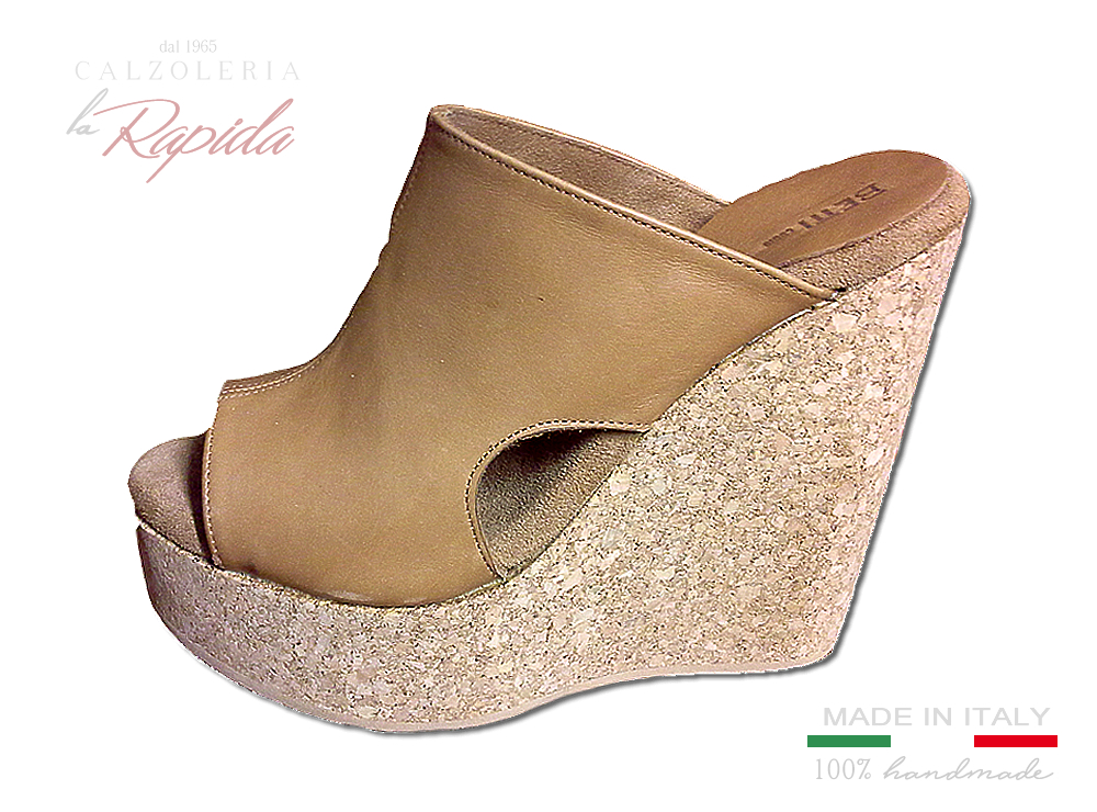 Materiale: zeppa donna in completo sughero, rivestita in pelle sulla pianta, tomaia in vero cuoio.