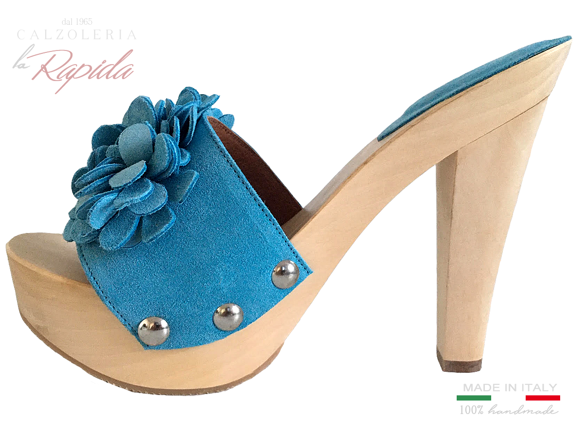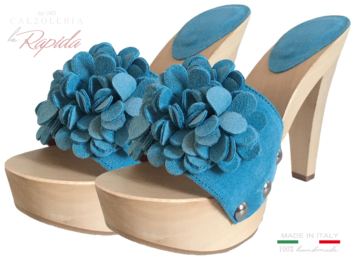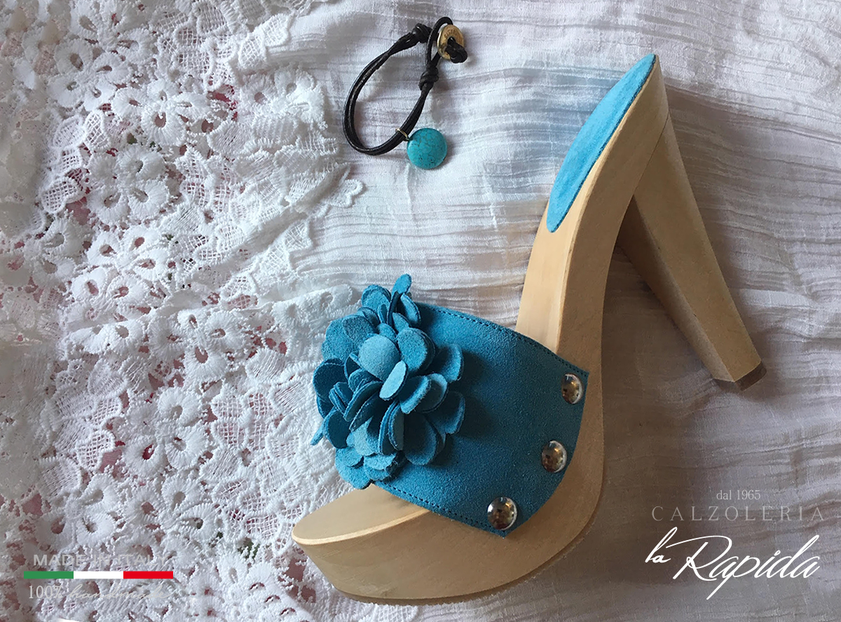 Il modello Mariazzurra può essere personalizzato, e ottenerlo con varianti di colore della pelle e di tacchi in legno della nostra linea qui a seconda del gusto. Se desideri acquistarlo, puoi aggiungere al carrello il prodotto, e nel campo note ordine prima delle conferma, indicare il colore con cui desiderate che sia costruito. Desideri avere una personalizzazione? Contattaci qui