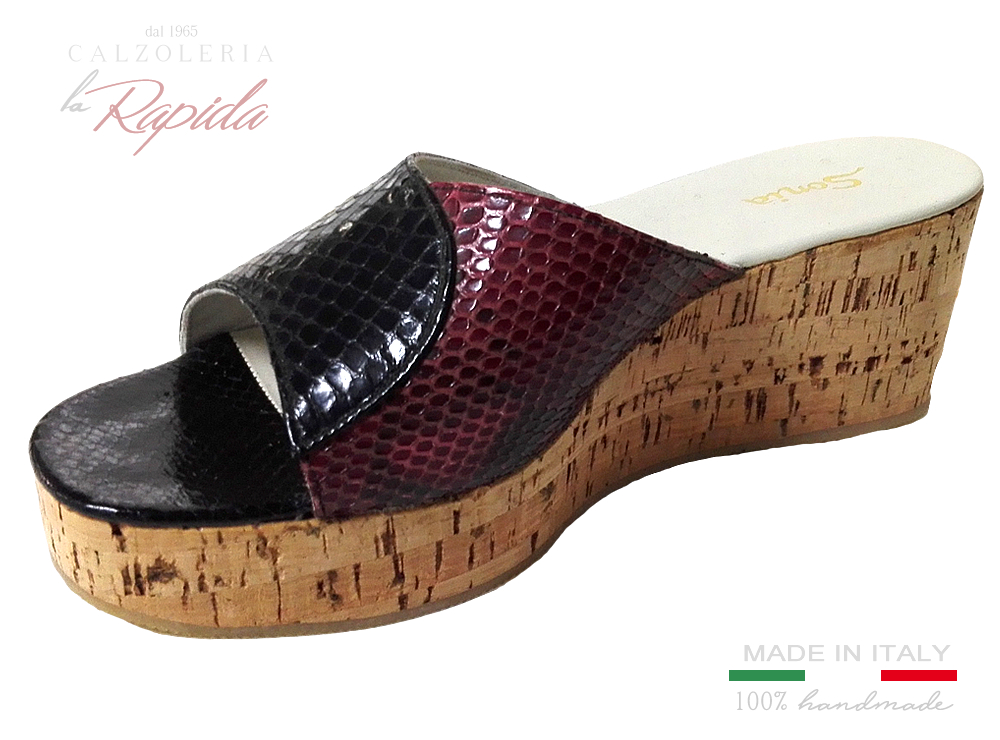 Materiale: Ciabatte con Zeppa  in sughero, in pelle stampato serpente in vari colori.