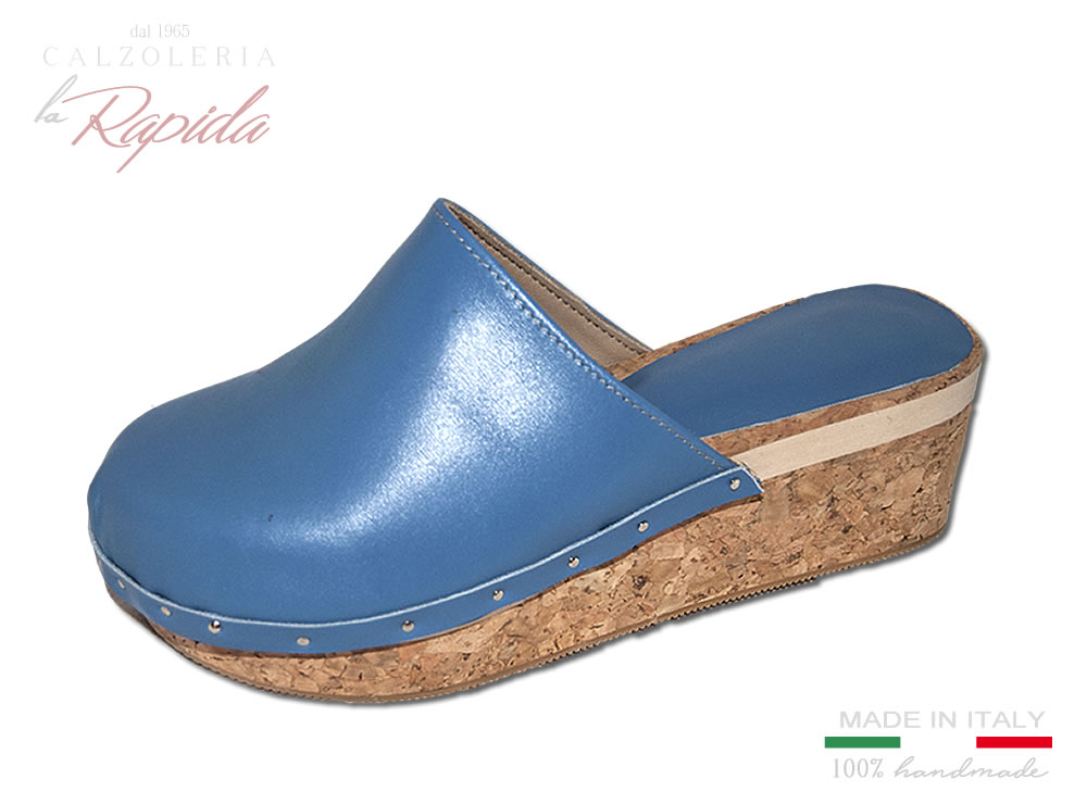 Materiale: zoccolo in sughero leggero, tomaia pelle colori vari
