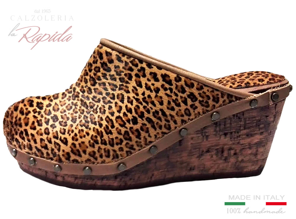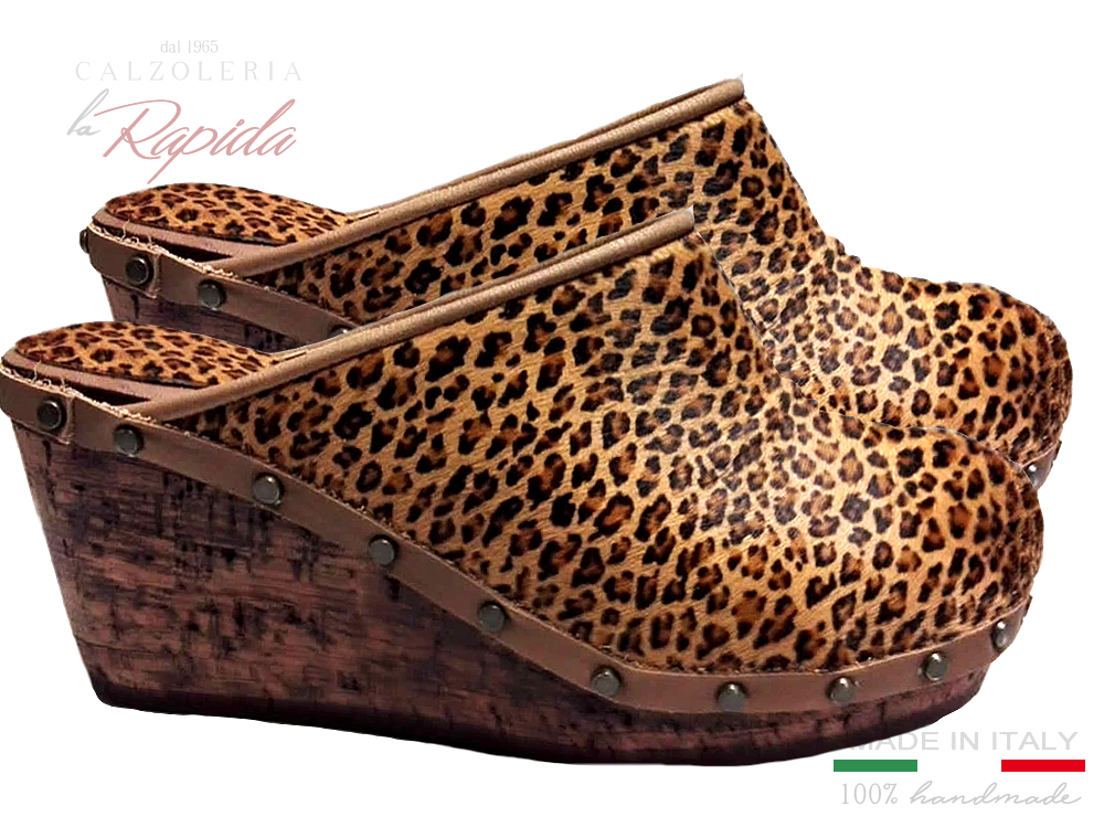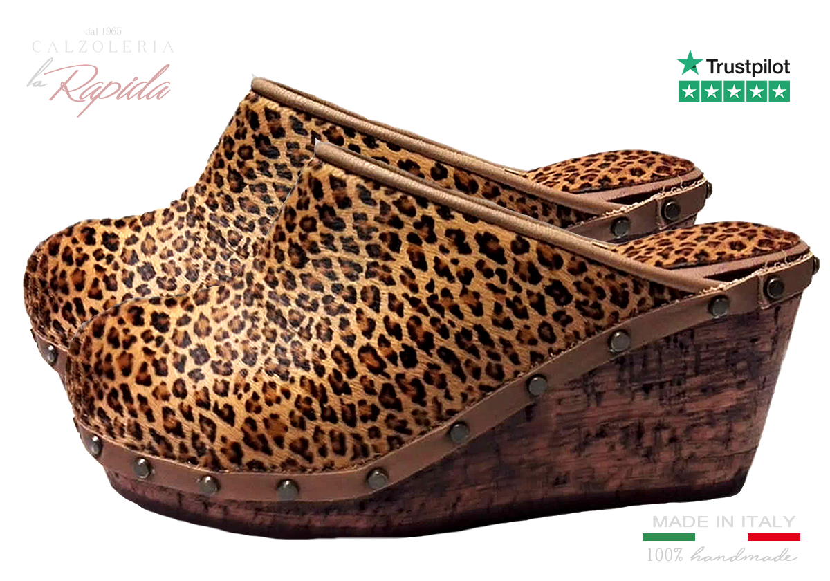 Materiale: Zeppa in vero Sughero 100% , pelle cavallino maculato leopardo.