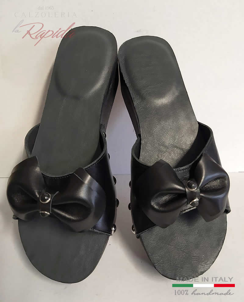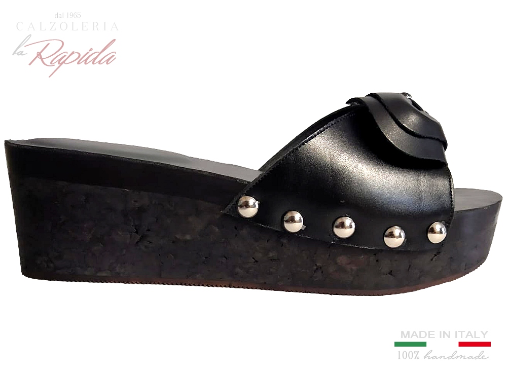 Materiale: fondo in completo sughero con fascia in pelle nera e decorazione con fiocco costruito a mano.